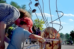 Percussion instinctive, captation de mouvement, orgues de verre… chaque sculpture est une œuvre-instrument, qui entraîne le public dans la découverte des sons et dans l’improvisation musicale en famille…